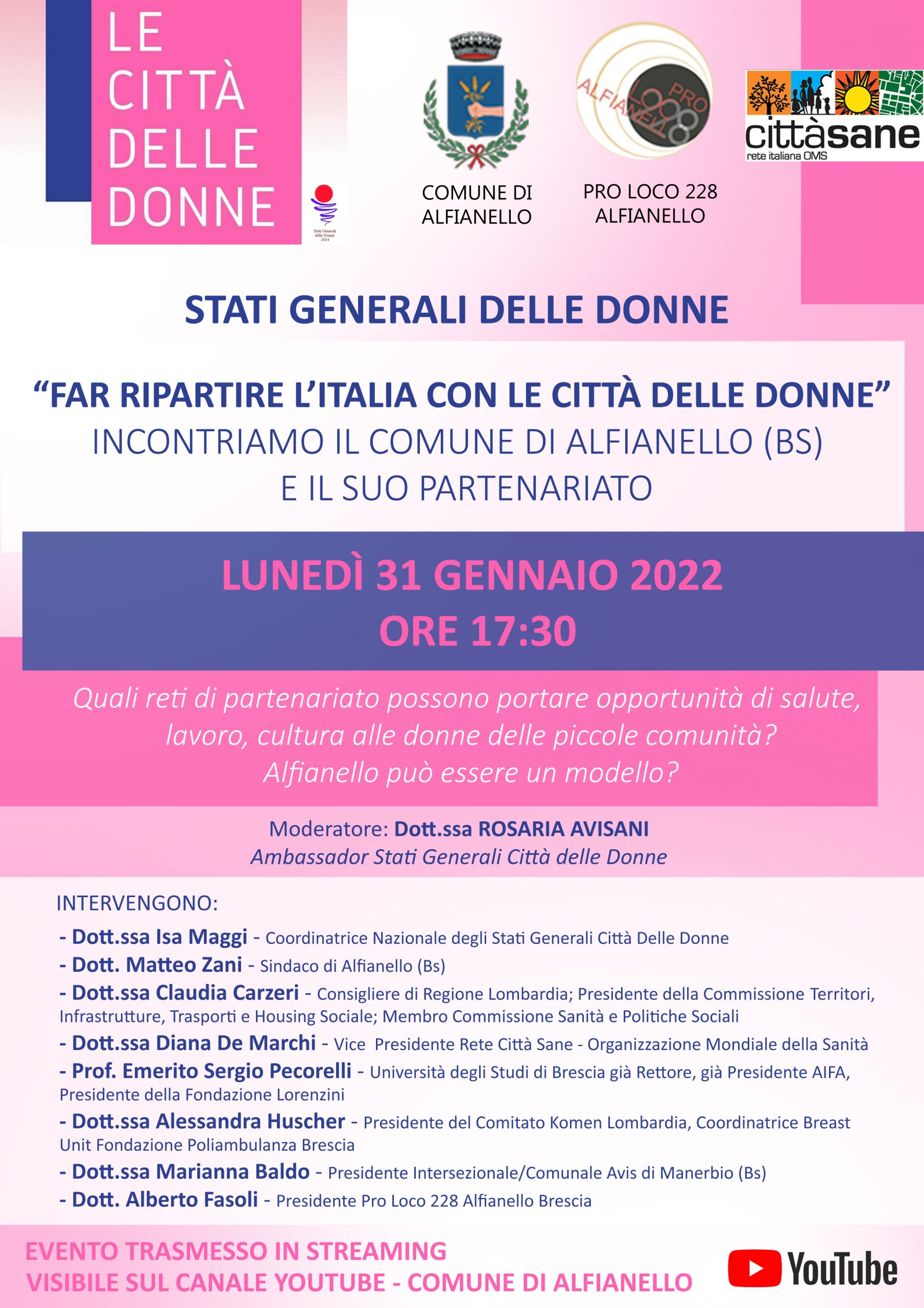 La Rete Italiana Città Sane – OMS, che patrocina il progetto, parteciperà attraverso la presenza della Vicepresidente Dina De Marchi.